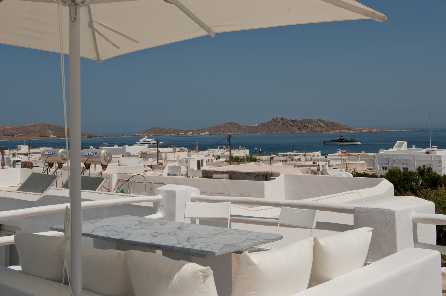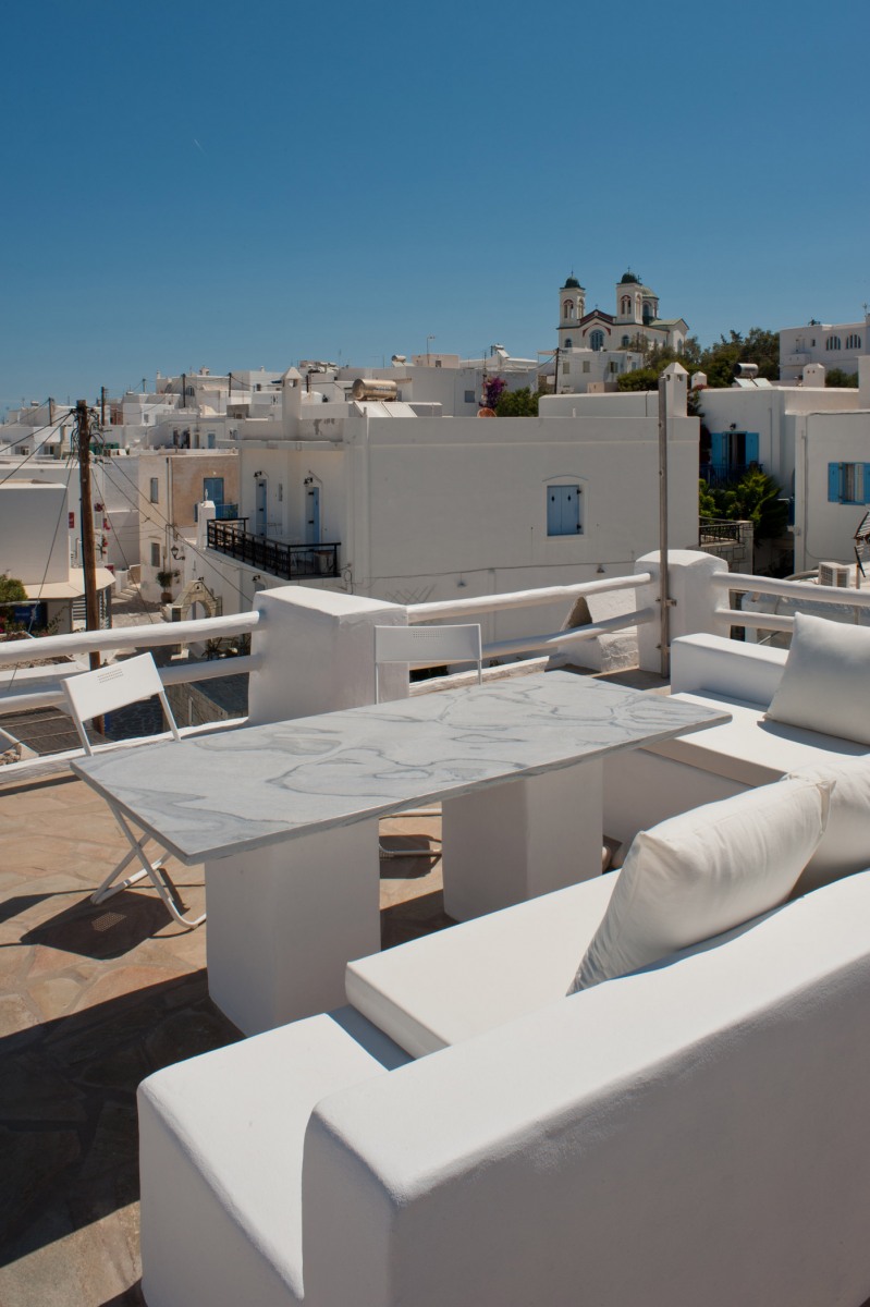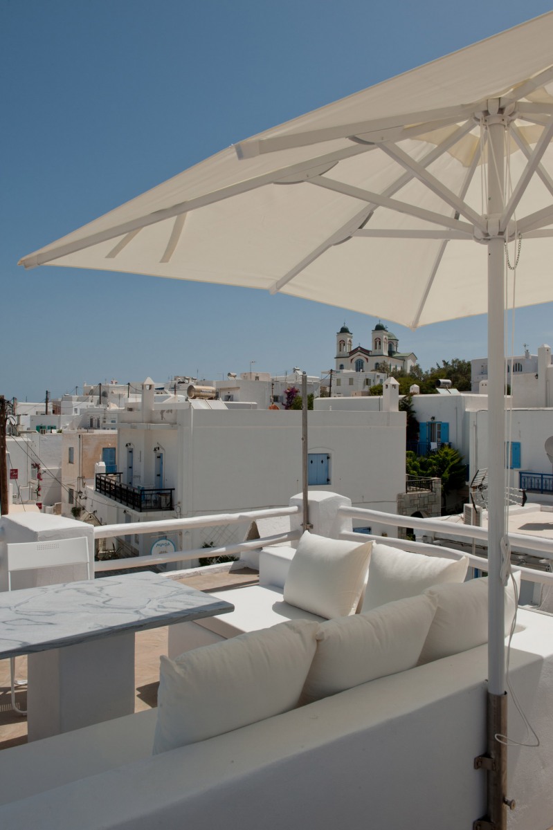 The “Meltemi” house is a century-old house in the center of the village of Naoussa. The ground floor was a lime paint factory and the whole village was whitewashed each year by the owner of the house. Later in the 1970s, two avant-garde women turned the house into a bar. It was named “Meltemi” meaning in Greek “northern wind” because Naoussa is located in the north of the island and swept by the gentle breeze of the “Meltemi” in August.