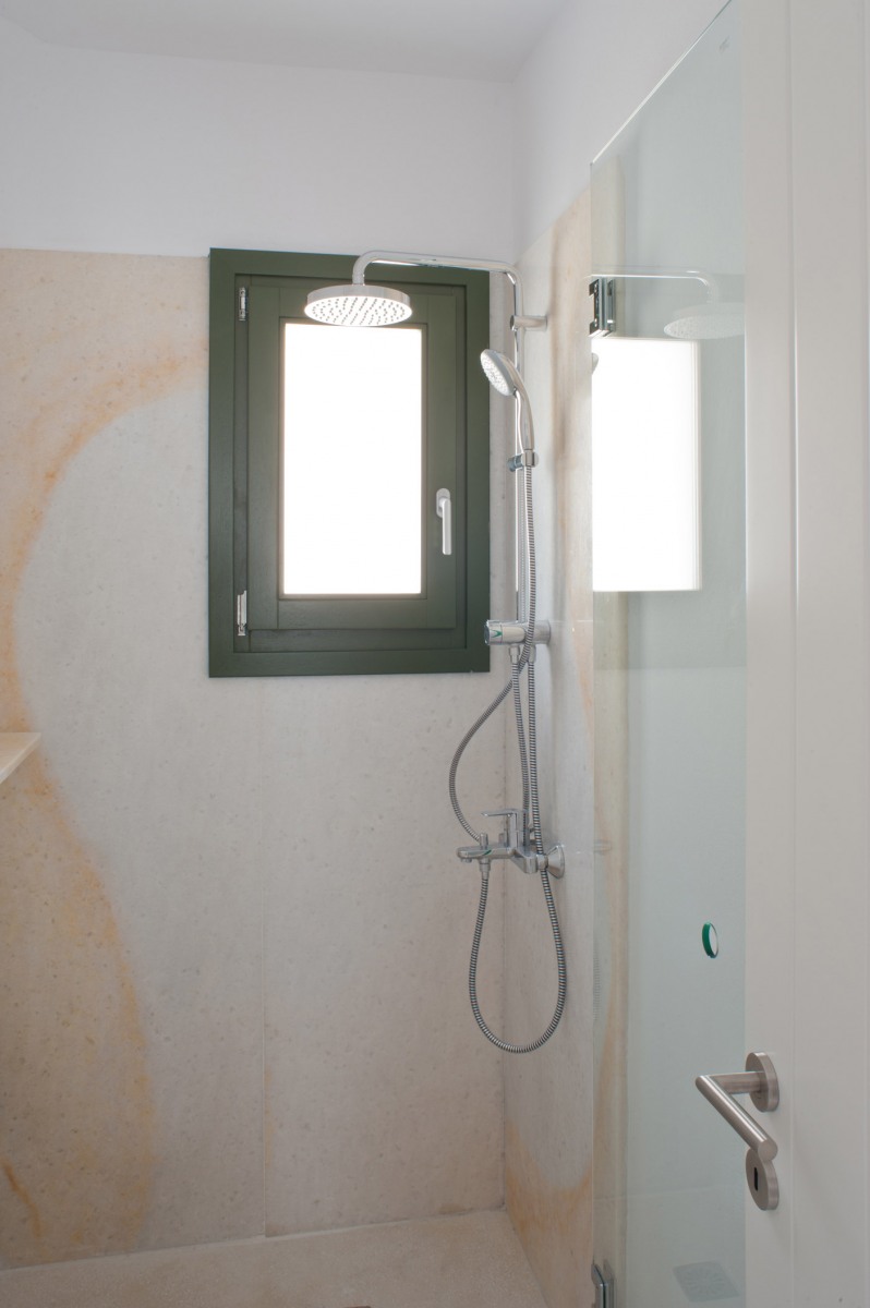 Cyprès, est une maison traditionnelle dans l’esprit et contemporaine dans sa conception, avec l’utilisation de marbre local dans la cuisine et les salles de bain, un terrazzo artisanal au sol, des plafonds habillés de poutres et canisses traditionnels, des douches à l’italienne, une douche extérieure dans le patio et tous les équipements nécessaires au mode de vie d’aujourd’hui: lave-vaisselle, lave-linge, four et plaques à induction, frigidaire-congélateur, climatisation dans les chambres, moustiquaires à toutes les fenêtres, double vitrage isolant du bruit et des conditions climatiques.